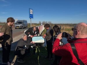 In een korte bijeenkomst onthulden burgemeester Géran Kaai van Rhenen en burgemeester René Verhulst van Ede in aanwezigheid van Mw. Mr. Marijn Ornstein, dijkgraaf van Waterschap Vallei en Veluwe, en burgemeester Floor Vermeulen van Wageningen, op 2 maart nieuwe borden langs het Valleikanaal nieuwe borden met de oude naam ‘Bisschop Davidsgrift’.