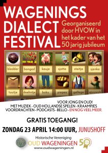 Vanwege het lustrum organiseert Oud Wageningen het Wagenings Dialectfestival. Iedereen is welkom. De toegang is gratis.